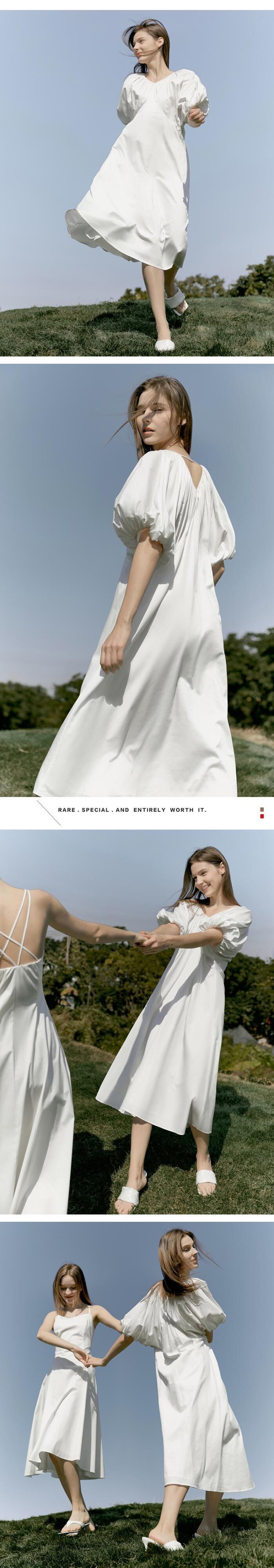AMII ミニマリストのロングドレスの女性の夏 100% フレンチスタイルのパフスリーブ V ネックソリッドルーズ Vestido 12240432 サマー 夏物 Vネック ソリッドカラー | twelve