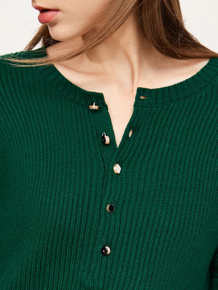 Amii ミニマリズム冬のセーターの女性オフィスレディ Oneck ボタンルーズプルオーバーニットトップス服 12130430 ウィンター 冬物 会社 学校 通勤や通学にも