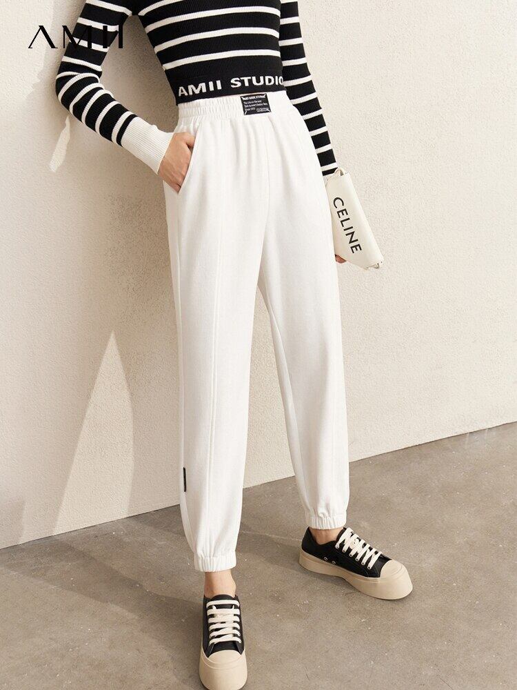AMII ミニマリズム スウェットパンツ レディース 秋 スポーティー スタイル ソフト オールマッチ ルーズ エラスティック トレンド アンクルレングス パンツ 12270408 伸縮 オータム 秋物 | twelve
