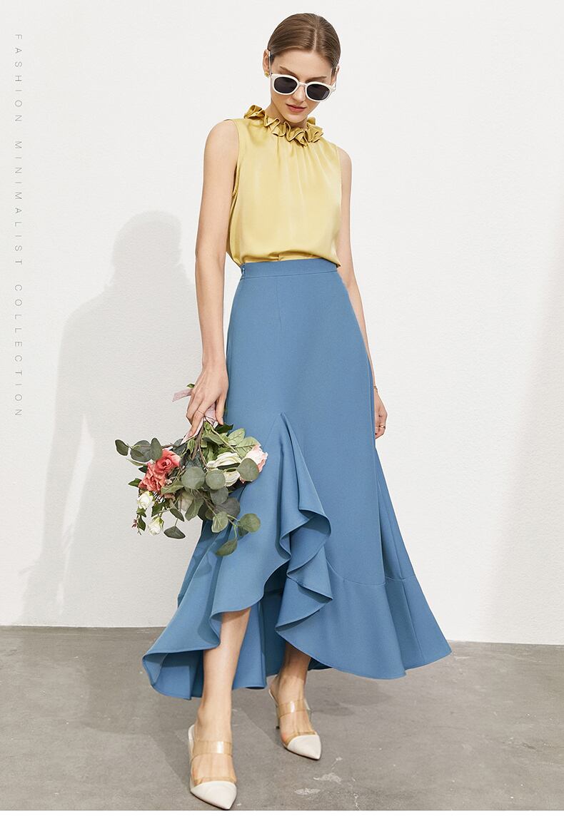 Amii ミニマリズム夏のスカートの女性公式レディソリッドウエスト非対称 Ankellength 女性のドレス 12170218 サマー 夏物 ソリッドカラー
