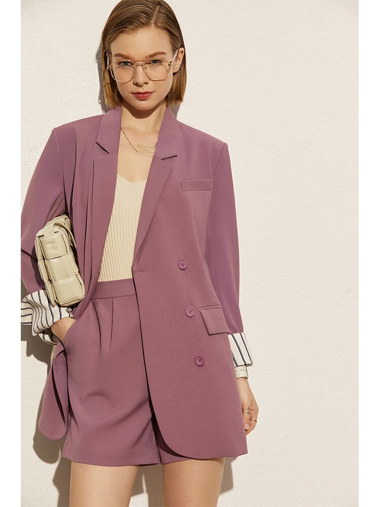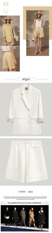 Amiiミニマリズムブレザー春夏オフィスレディブレザー無地パッチワーク女性ジャケットコート因果女性のショーツ 12170071 スプリング 春物 サマー 夏物 ブルマー ソリッドカラー 会社 学校 通勤や通学にも | twelve