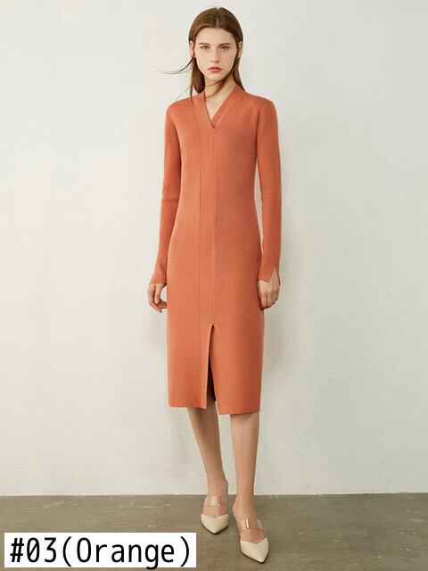 AMII ミニマリズム ニット ロングワンピース 無地 Vネック フルスリーブ オフィスレディ ふくらはぎ丈 秋冬ワンピース 12241237 オータム 秋物 ウィンター 冬物 ソリッドカラー 会社 学校 通勤や通学にも | twelve