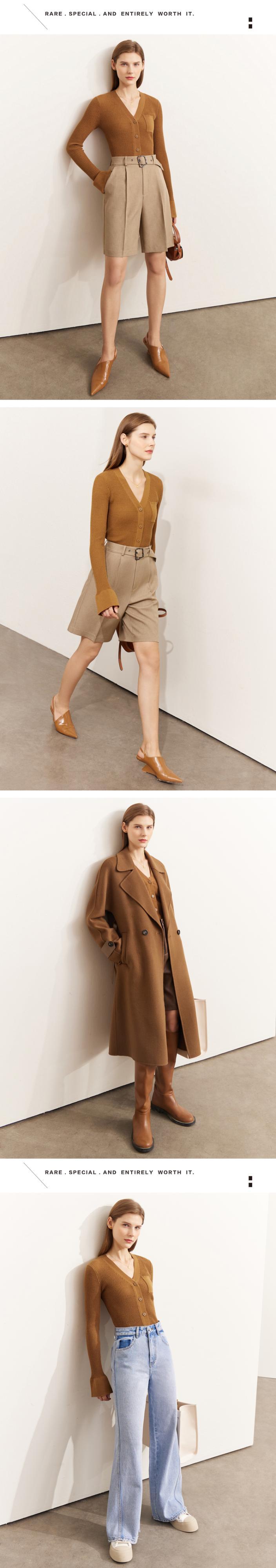 AMII ミニマリスト カーディガン レディース 春 100% ウール ソリッド エラスティック ニッチ セーター トップス 12270536 伸縮 スプリング 春物 ソリッドカラー