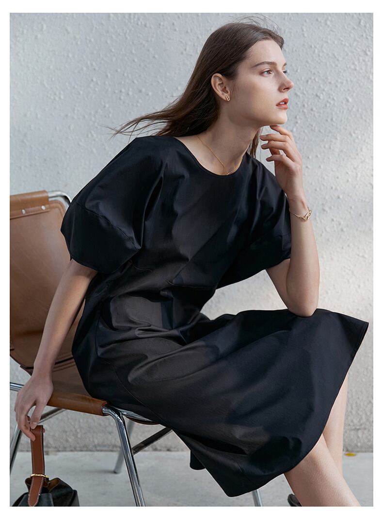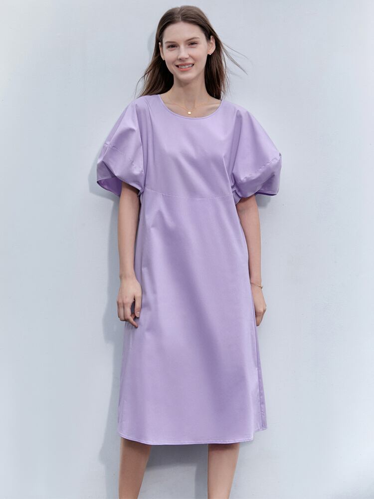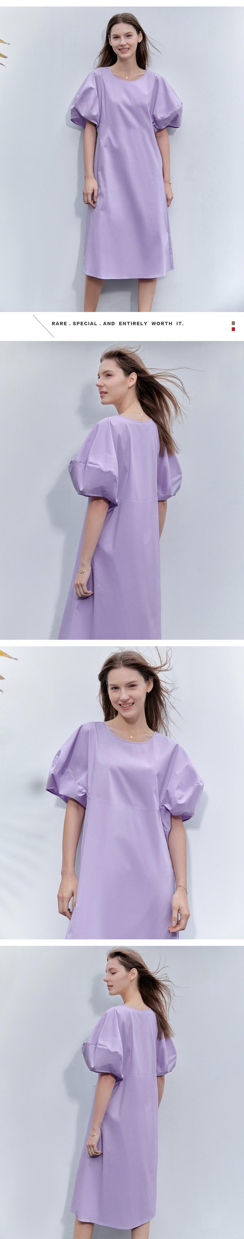 Amii ミニマリスト 夏 レディース ロングドレス ランタン 半袖 Aライン Oネック オフィスレディ 無地 ワンピース 服 12240238 ショート ハーフスリーブ サマー 夏物 ソリッドカラー 会社 学校 通勤や通学にも | twelve
