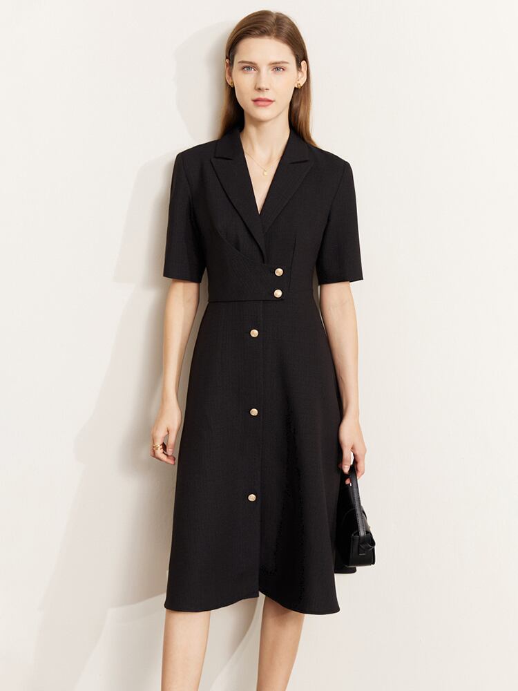Amii ミニマリストジャケットドレス女性春ダブルブレスト A ラインオフィスレディスリムミディドレス Vestidos 72341056 スプリング 春物 Aライン 会社 学校 通勤や通学にも | twelve