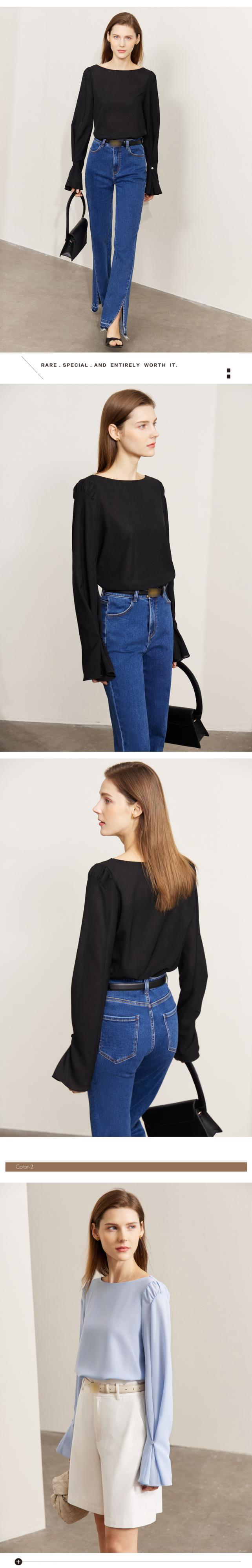 AMII ミニマリズムブラウス女性春ソリッドニッチオフィスレディシャツフレアスリーブブラウスプルオーバートップス 72341046 スプリング 春物 ソリッドカラー 会社 学校 通勤や通学にも | twelve
