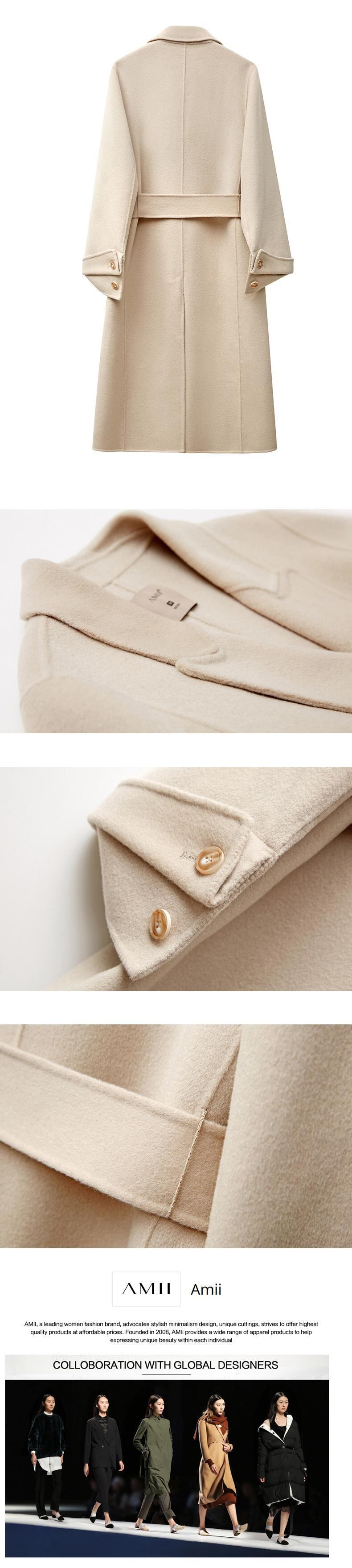 Amii ミニマリズム冬コート女性固体 100% ウールベルトふくらはぎ丈両面ウールコート女性のジャケット 12040654 ウィンター 冬物 ハーネス ソリッドカラー