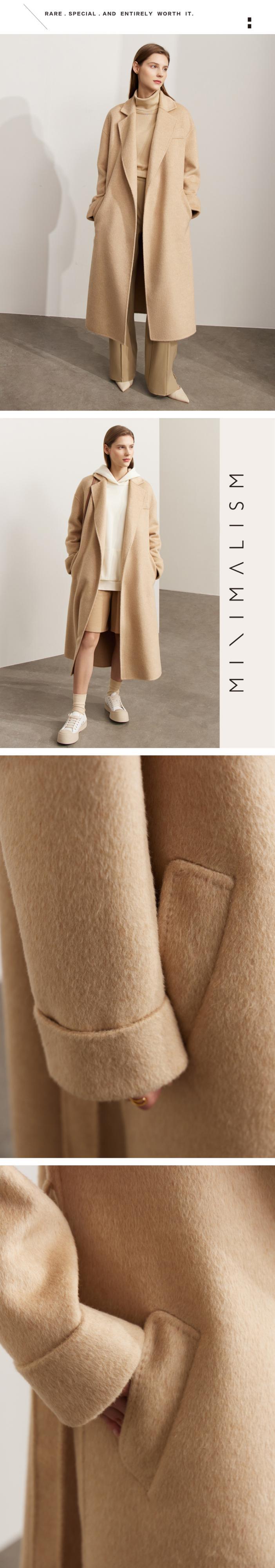 AMII ミニマリズム ウール コート レディース 冬 通勤 ソリッド ウォーム レースアップ ベルト トップス 12270554 ウィンター 冬物 ハーネス ソリッドカラー