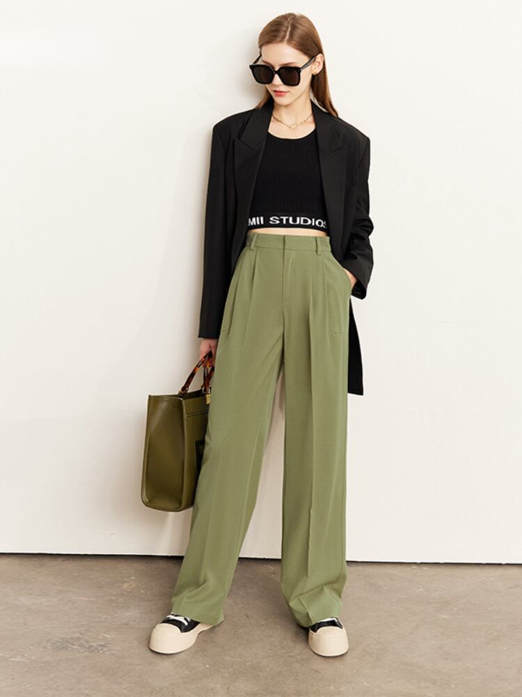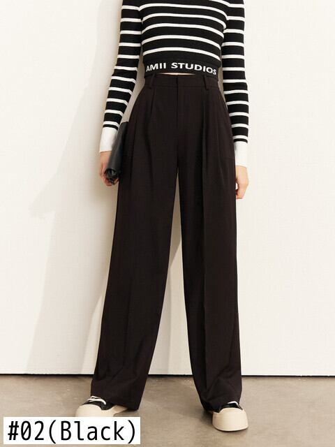AMII ミニマリズム春秋パンツ女性ウエストオフィスレディストレートワイドレッグパンツズボン 12240866 スプリング 春物 オータム 秋物 ワイドパンツ 会社 学校 通勤や通学にも | twelve