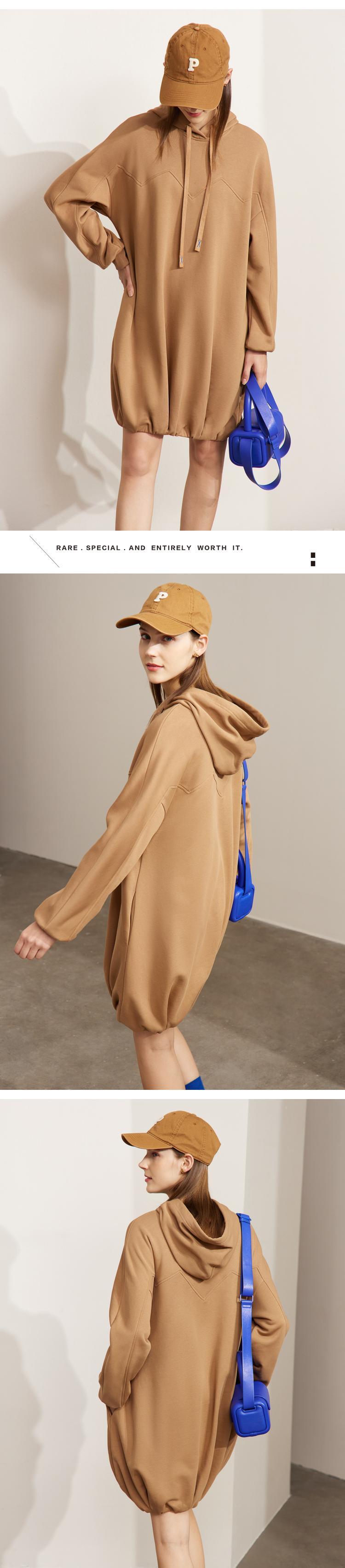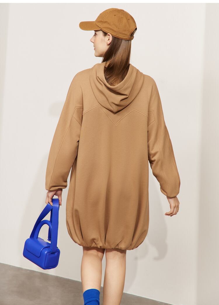 AMII ミニマリズムスウェットシャツドレス女性の冬のソリッドレースアップルーズフード付きコットン厚みのある暖かいドレス Vestido 12230394 ウィンター 冬物 ソリッドカラー | twelve