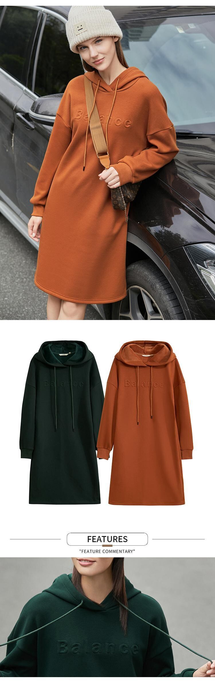 AMII ミニマリズムドレス女性の冬の手紙刺繍ゆるいフード付きレースアップ暖かいドレス Vesitdos 12141229 ウィンター 冬物