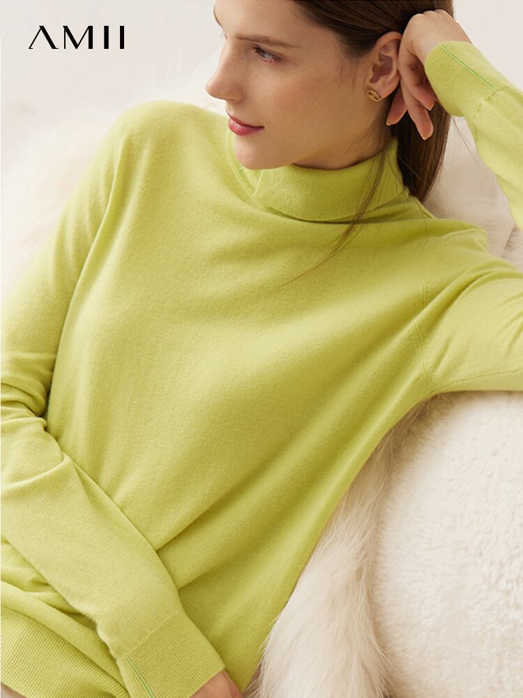 AMII ミニマリズムセーター女性の冬 100% ウール暖かい固体タートルネックオフィスレディニットトップス 12141151 ウィンター 冬物 ソリッドカラー 会社 学校 通勤や通学にも