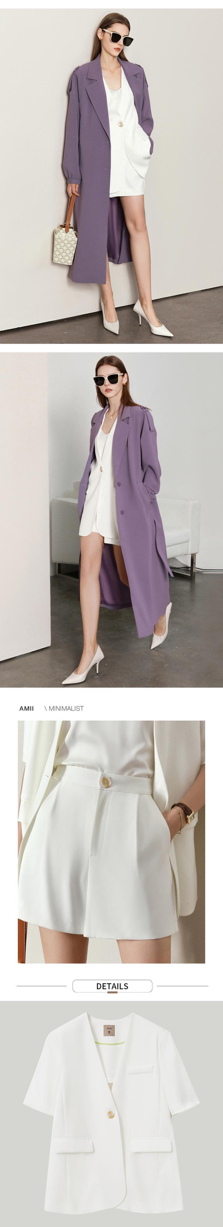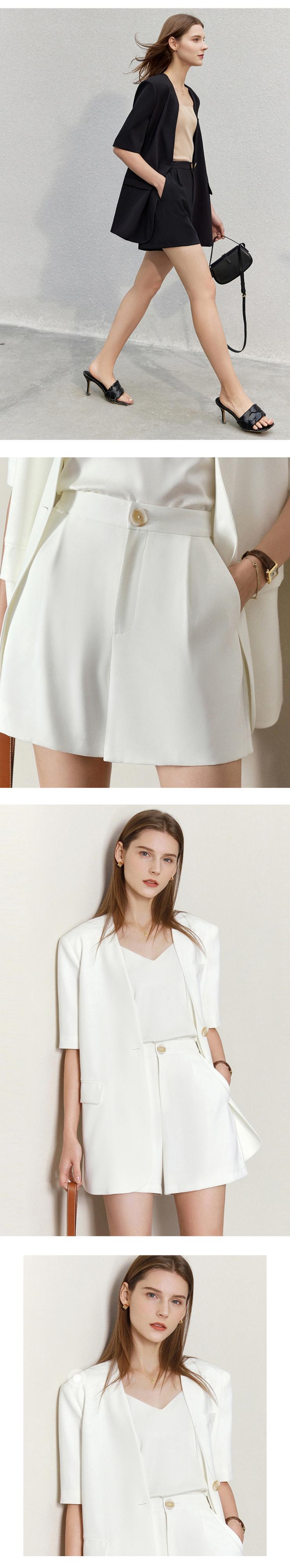 Amii ミニマリスト春スーツ女性ブレザーコートソリッドウエストショーツオフィスレディスーツジャケット女性のショートパンツ 12240157 スプリング 春物 ブルマー ソリッドカラー 会社 学校 通勤や通学にも | twelve