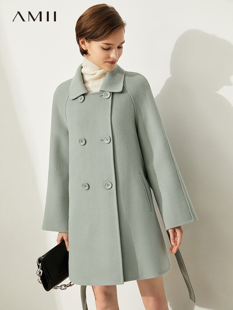 Amii ミニマリズム冬のウールのコートの女性 100% ウール両面ジャケット女性のブレンドコートオーバーコート 12170564 ウィンター 冬物