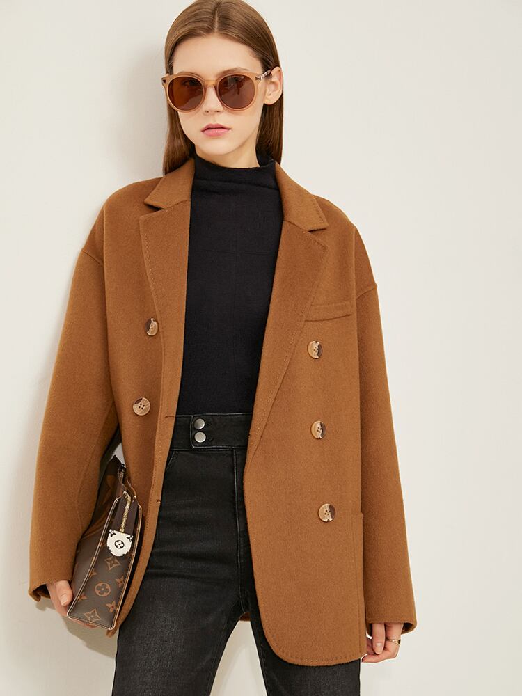Amii ミニマリズム冬のウールのコートの女性厚く暖かいロングジャケットオフィスの女性 100% ウールコートオーバーコート 12160088 ウィンター 冬物 会社 学校 通勤や通学にも | twelve