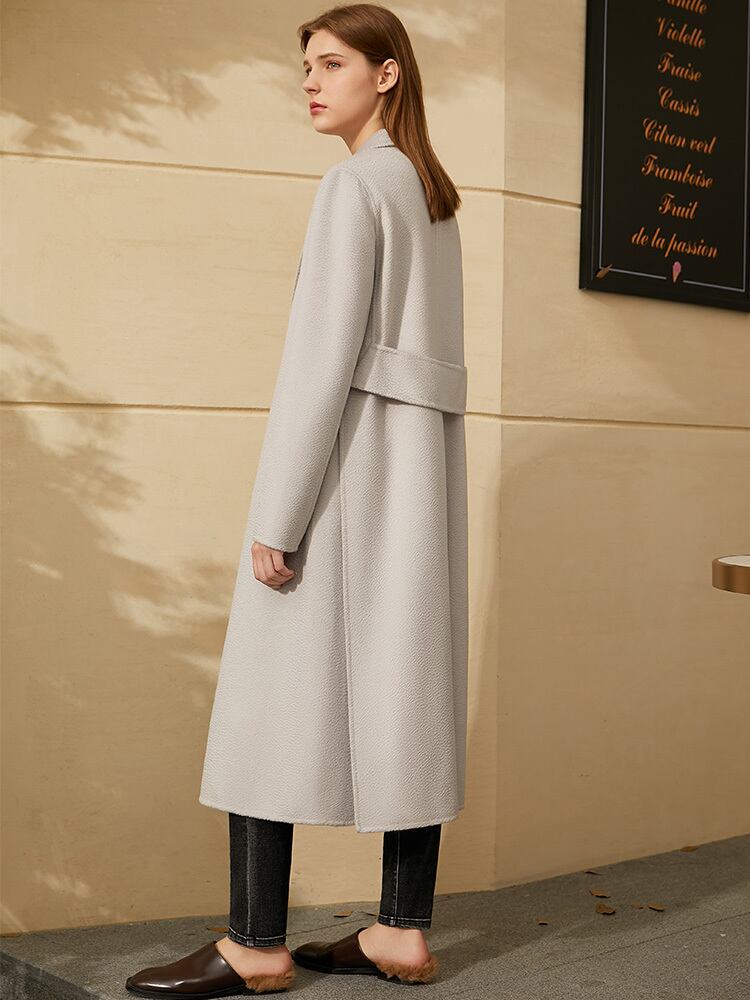 Amii ミニマリズム ラグジュアリー コート 冬 無地 ラペル シングルブレスト ふくらはぎ丈 両面ウールコート 12040778 ウィンター 冬物 ソリッドカラー