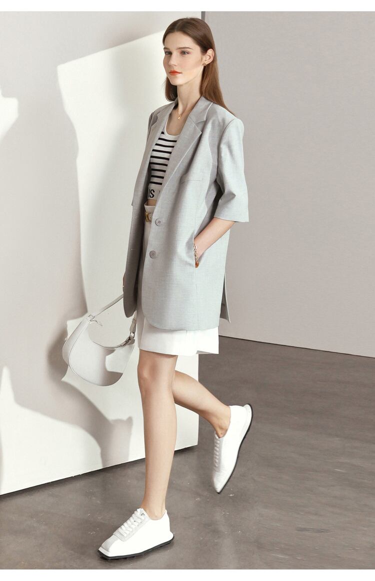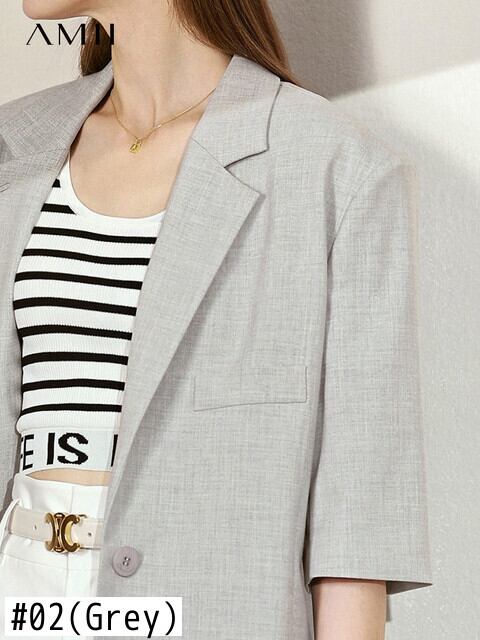 Amii ミニマリズム夏ブレザー女性コート半袖オフィスレディ無地ラペルブレザールースジャケット 12240264 ハーフスリーブ サマー 夏物 ソリッドカラー 会社 学校 通勤や通学にも | twelve