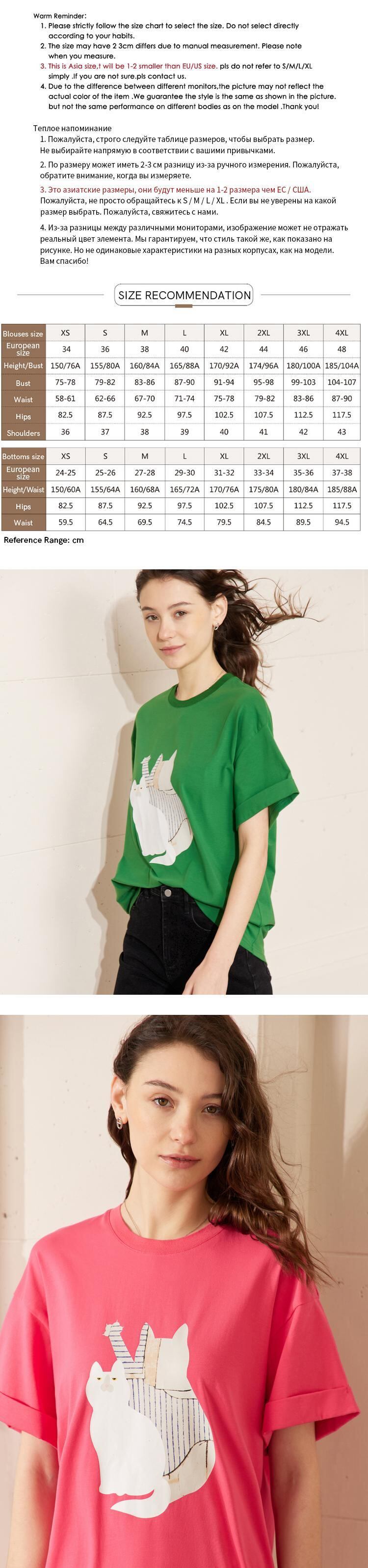 AMII ミニマリズム Tシャツ女性猫プリントかわいいルーズニッチ Tシャツ O ネックプルオーバートップス 12322085 大人ガーリー スウィート キュート カジュアル Oネック | twelve