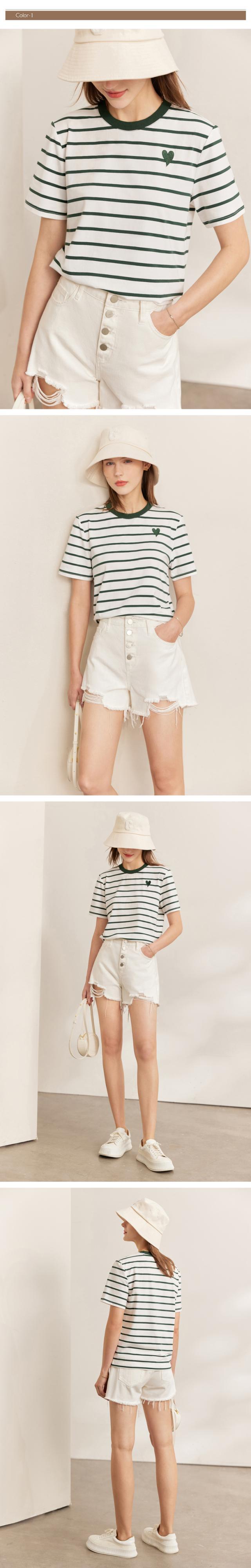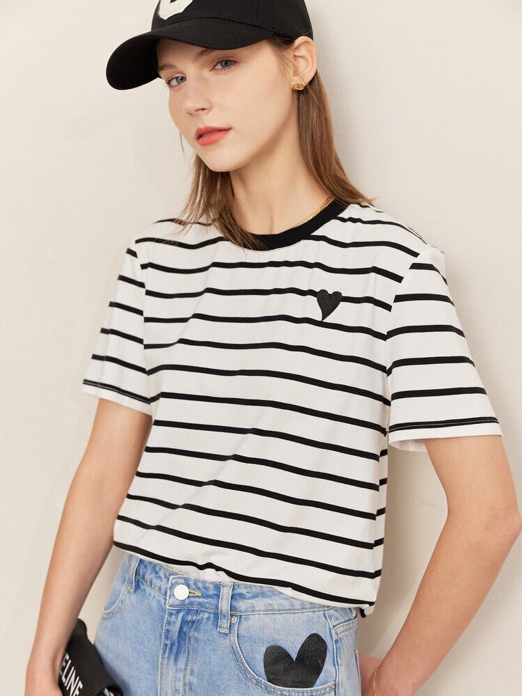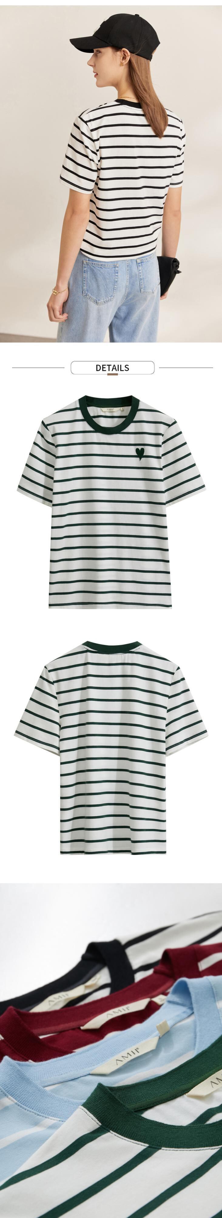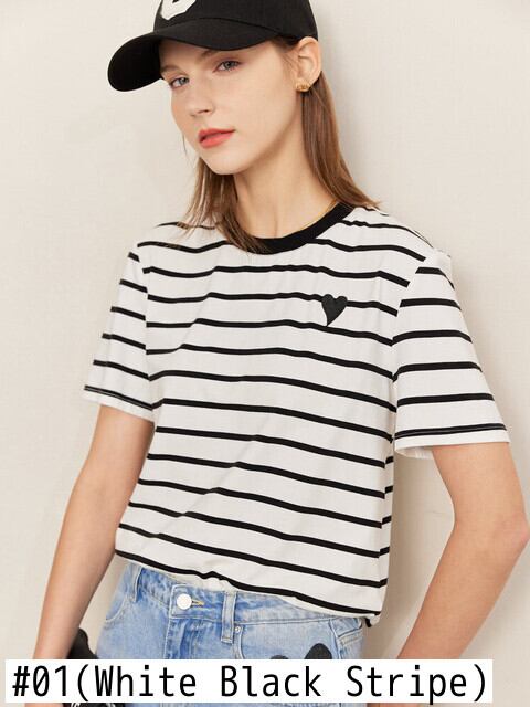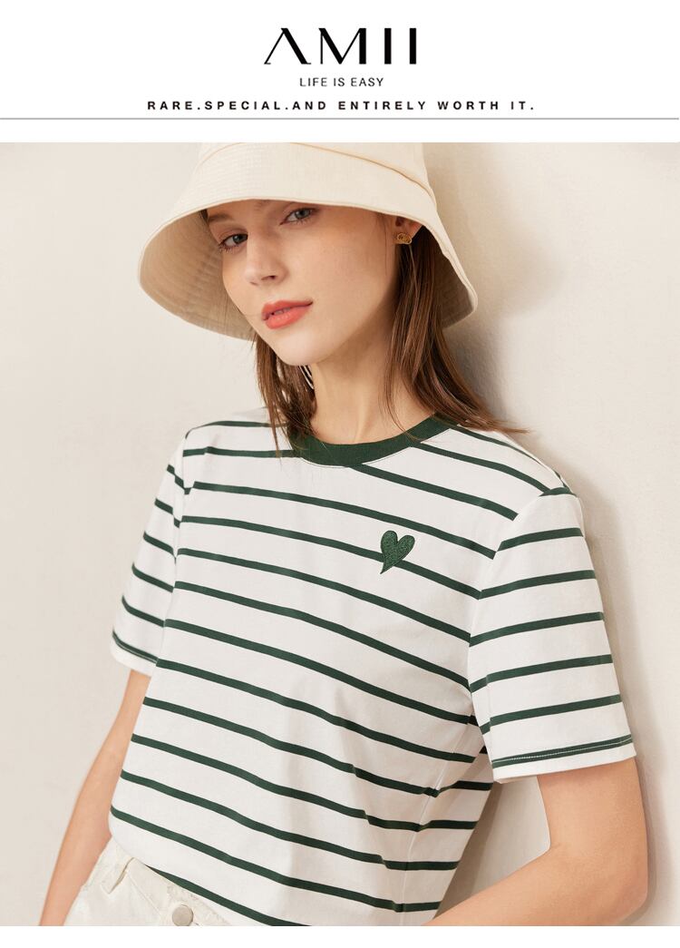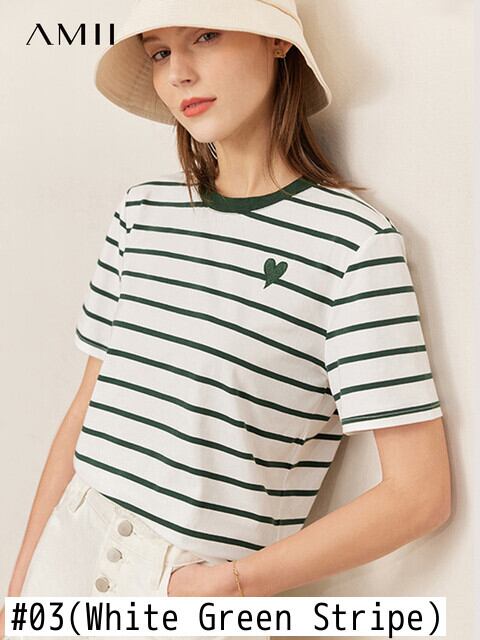 AMII ミニマリズム Tシャツ女性春刺繍フレンチ Tシャツ O ネックルーズオフィスレディ Tシャツトップス 12322060 スプリング 春物 Oネック 会社 学校 通勤や通学にも | twelve