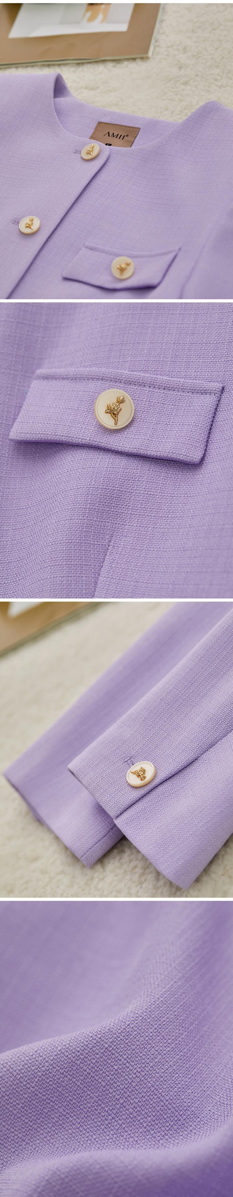 Amii ミニマリストジャケット女性春ラウンドネックストレートショルダーライトタキシードショートコート女性 12321002 スプリング 春物 Oネック