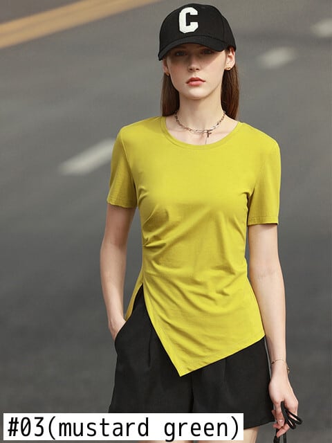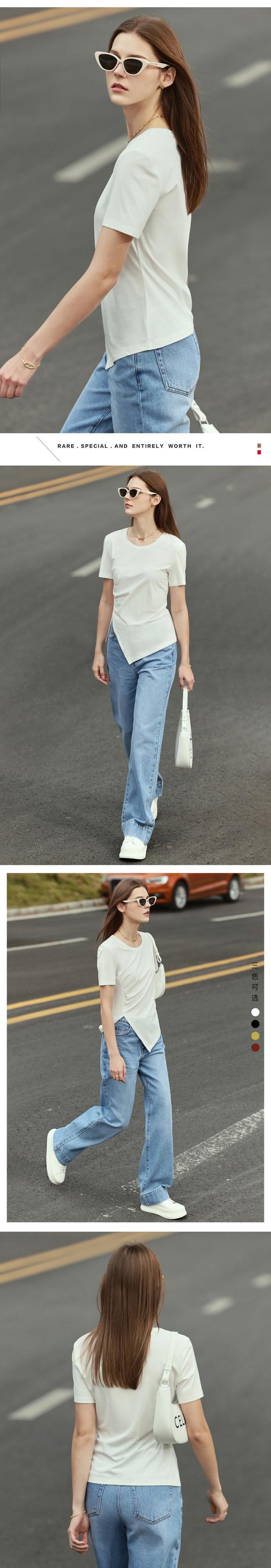 Amii ミニマリスト春夏 Tシャツ Oneck 無地非対称 Tシャツトップス半袖トップス 12240144 ショート ハーフスリーブ スプリング 春物 サマー 夏物 ソリッドカラー | twelve