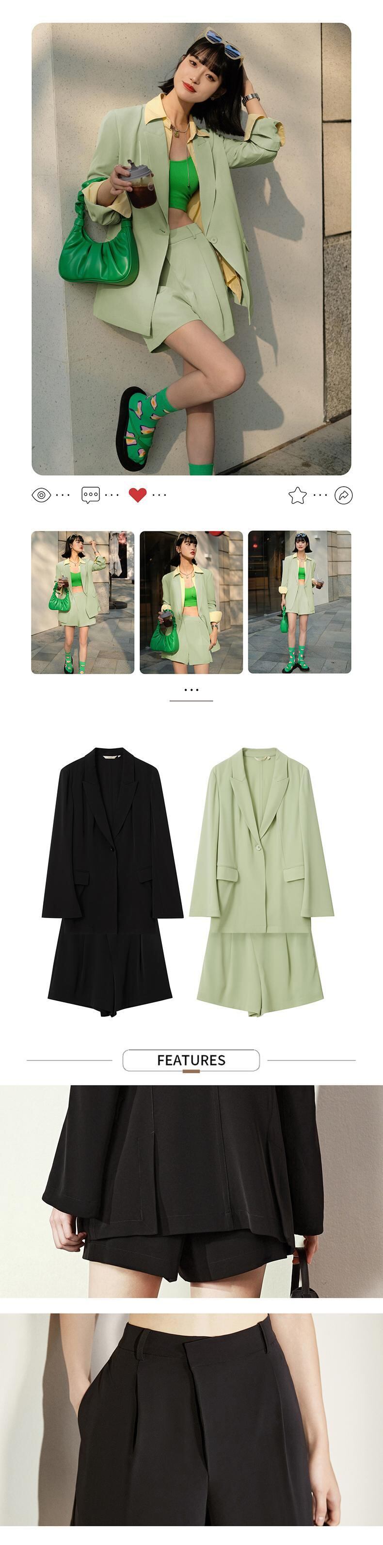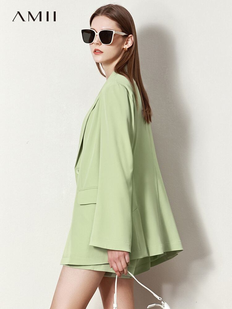 Amii ミニマリスト夏ののスーツジャケットルーズボタンブレザーコート無地ショーツパンツオフィスレディブレザー 12230035 サマー 夏物 ブルマー ソリッドカラー 会社 学校 通勤や通学にも | twelve
