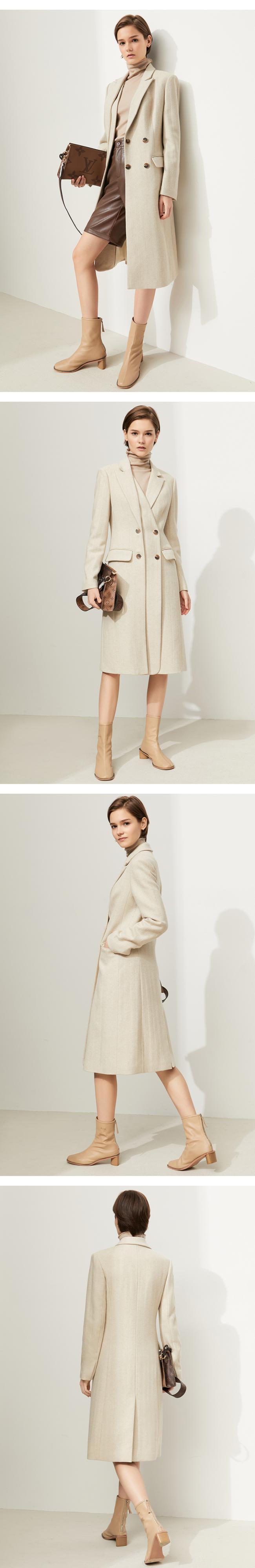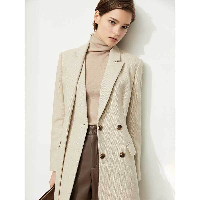 Amii ミニマリズム冬のウールのコートの非対称ダブルブレストロングジャケットウールコートオーバーコート 12140856 ウィンター 冬物