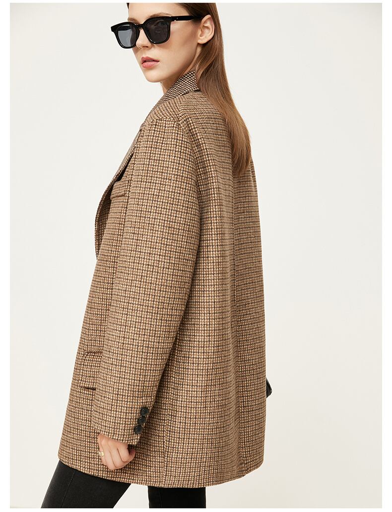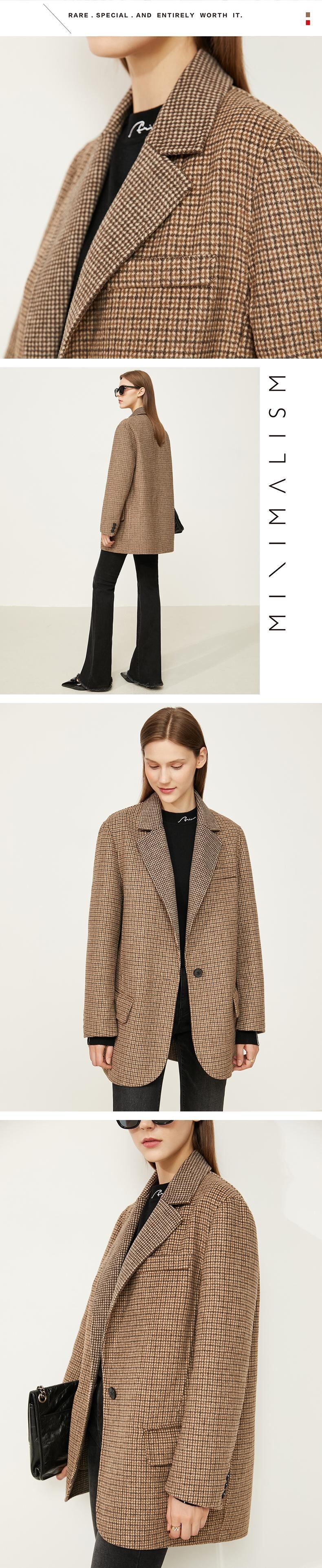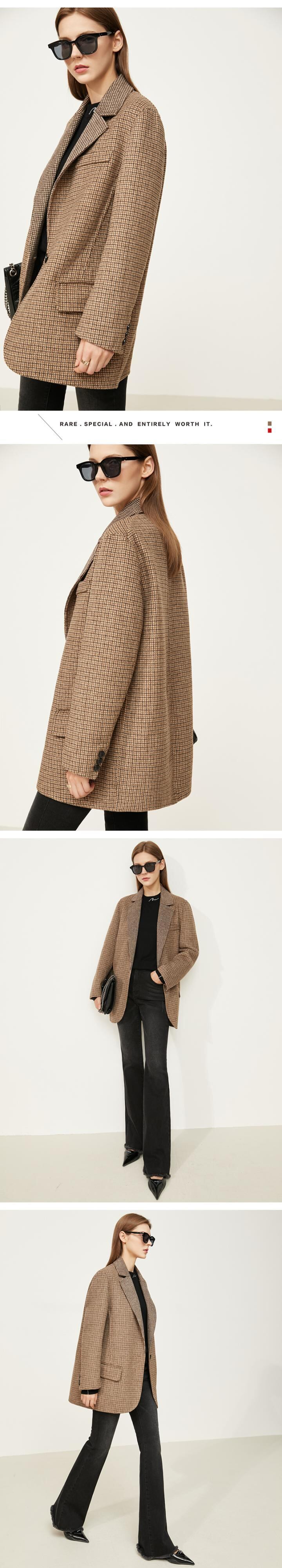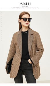 Amii ミニマリズム冬コートオフィスレディコートとジャケットブレザーチェック柄ウールコート生き抜く 12170571 ウィンター 冬物 会社 学校 通勤や通学にも
