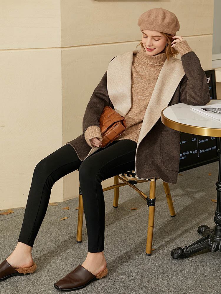 Amii ミニマリズム冬コートパッチワークラペルベルト緩い 100% ウール両面ウールコートジャケット 12030528 ウィンター 冬物 ハーネス