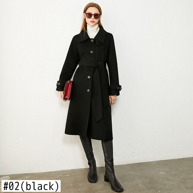 Amii ミニマリズム冬ののコートジャケット 100% ウールソリッドラペルシングルブレストベルト両面ウールコート 12030360 ウィンター 冬物 ハーネス ソリッドカラー