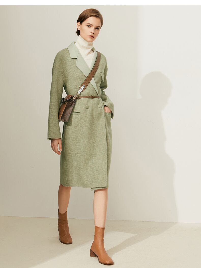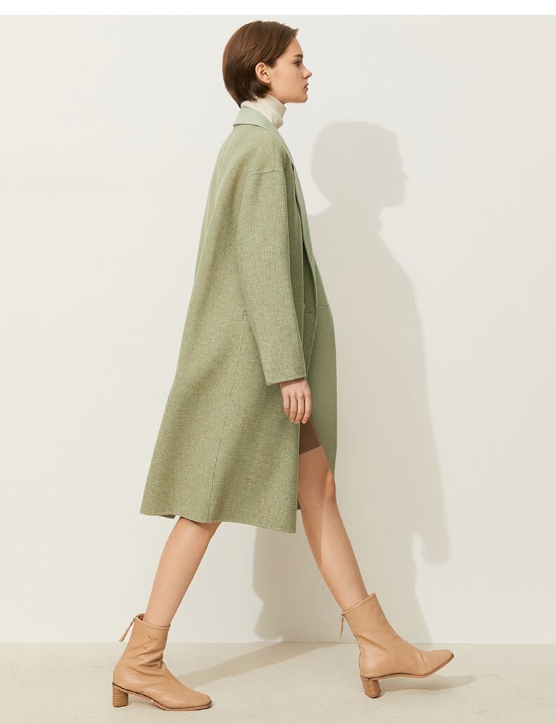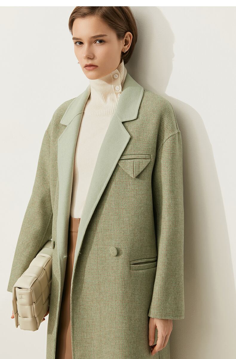 Amii ミニマリズム冬のウールのコートのオフィスレディチェック柄ストライプウール両面ロングジャケットオーバーコート 12141004 ウィンター 冬物 会社 学校 通勤や通学にも