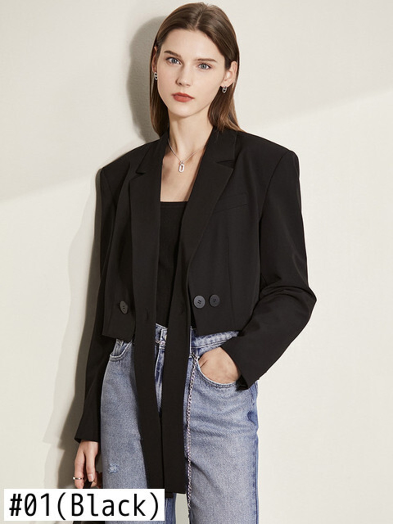 Amii ミニマリズム サマー レディース スーツ ジャケット ブラック ノッチ付き フルスリーブ ボタン ルーズ ブレザー コート オフィス レディー ブレザー 12240245 夏物 会社 学校 通勤や通学にも | twelve