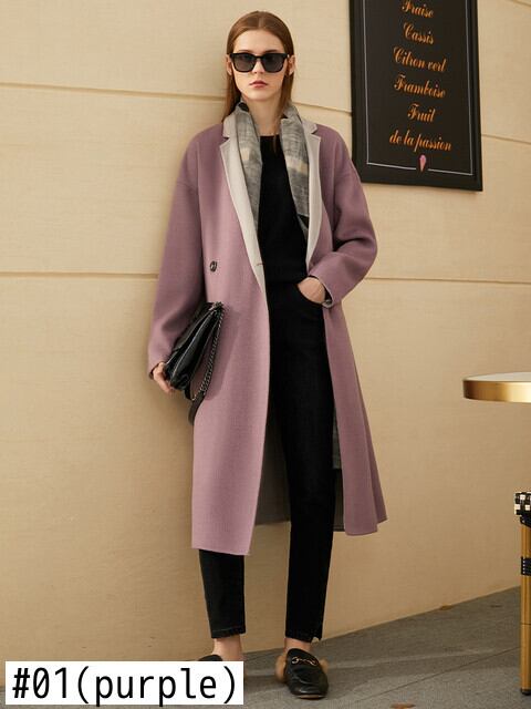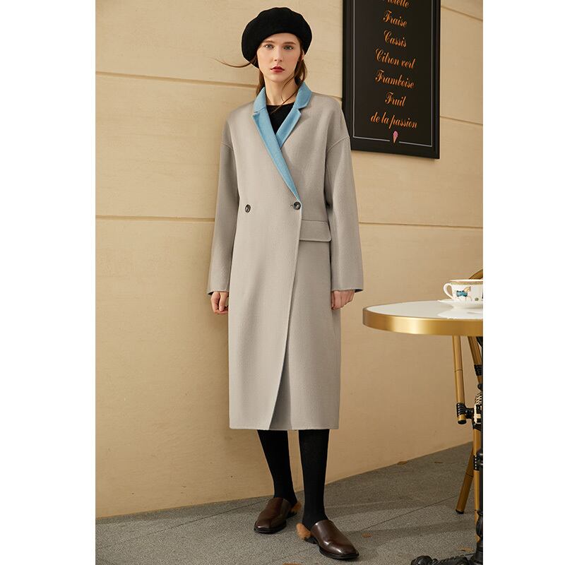 Amii ミニマリズム冬のウールコート因果パッチワークラペル緩い両面ウールコートブレンドコート 12060105 ウィンター 冬物