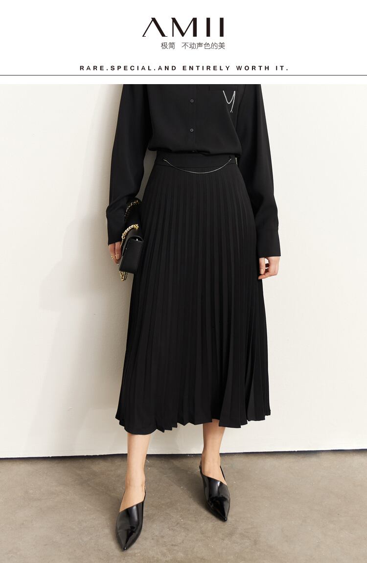 AMII ミニマリズムスカート春ドレスオフィスレディプリーツスカートロングメタルチェーンぶら下げ A ラインスカート 12351021 スプリング 春物 Aライン 会社 学校 通勤や通学にも | twelve