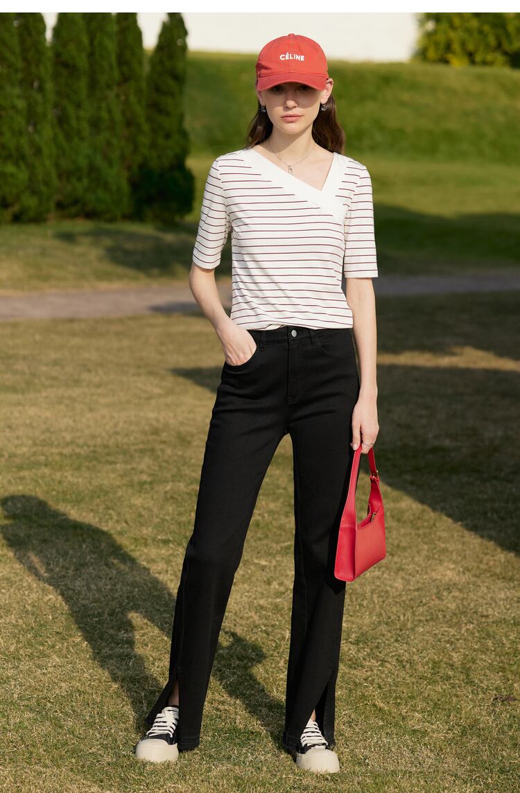 AMII ミニマリズム Tシャツ春フレンチスキュー襟スリム Tシャツオフィスレディ Strench プルオーバートップス 12341124 スプリング 春物 会社 学校 通勤や通学にも | twelve