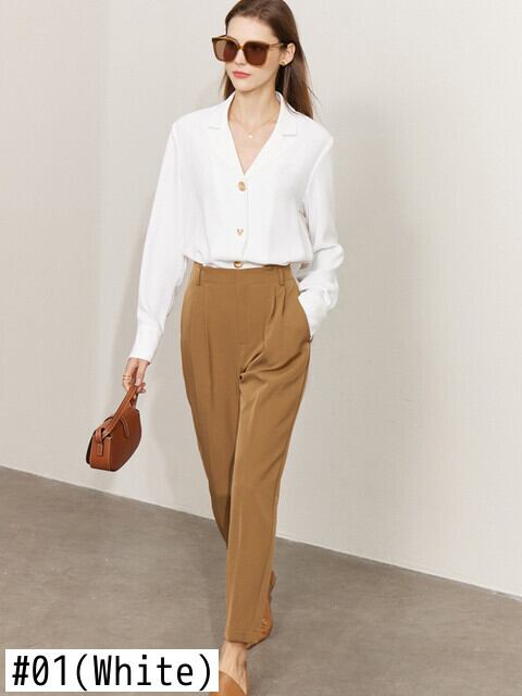 AMII ミニマリズムシャツ春ブラウス V ネックシフォンシャツユニークなオフィスレディロングルースプレミアムトップス 12341136 スプリング 春物 Vネック 会社 学校 通勤や通学にも | twelve