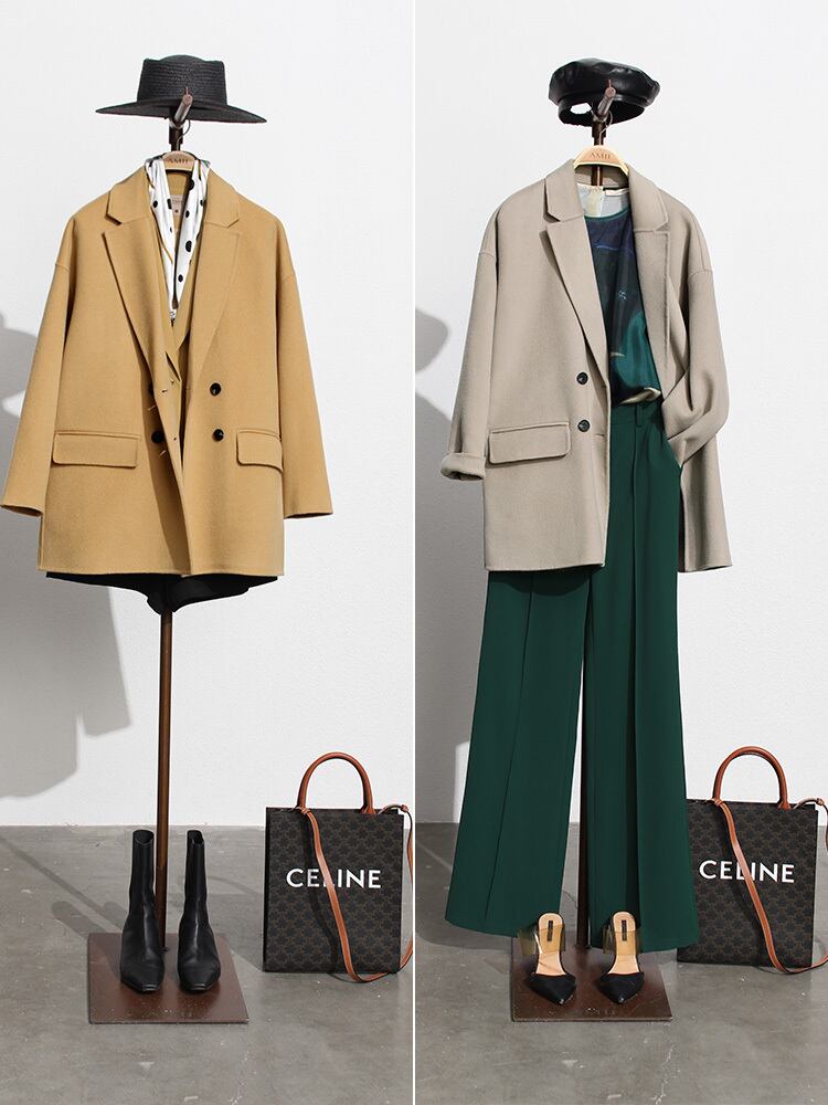 Amii ミニマリズム冬 100% ウールコート両面ジャケットオフィスレディウールブレザー生き抜く 1475 ウィンター 冬物 会社 学校 通勤や通学にも