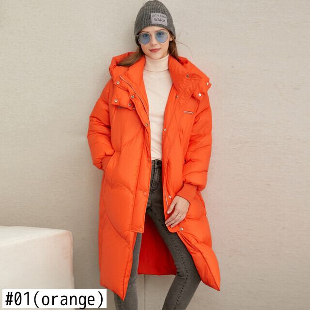 Amii 90% ホワイトダック 厚手 ダウンコート 冬 フード付き 無地 ルーズ ロング ジャケット トップス 11940488 ウィンター 冬物 ソリッドカラー