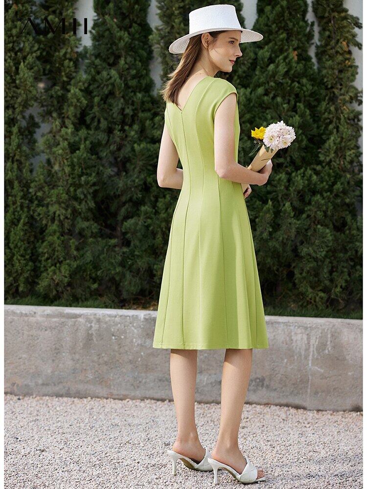 AMII ミニマリズムドレス夏プルオーバー Vestidos ノースリーブ V ネックオフィスレディ Xline 黒ドレス 12240534 ブラック サマー 夏物 会社 学校 通勤や通学にも | twelve