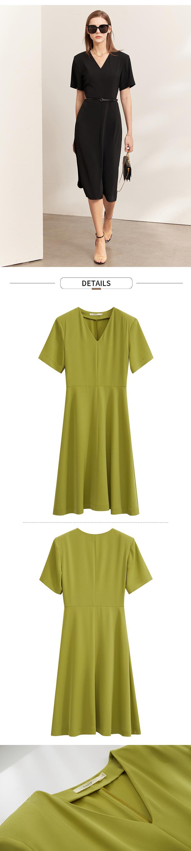 AMII ミニマリズム Dresse 夏プルオーバー半袖 Aline オフィスレディ Vestidos ソリッドブラックドレス 12240316 ショート ハーフスリーブ サマー 夏物 ソリッドカラー 会社 学校 通勤や通学にも | twelve