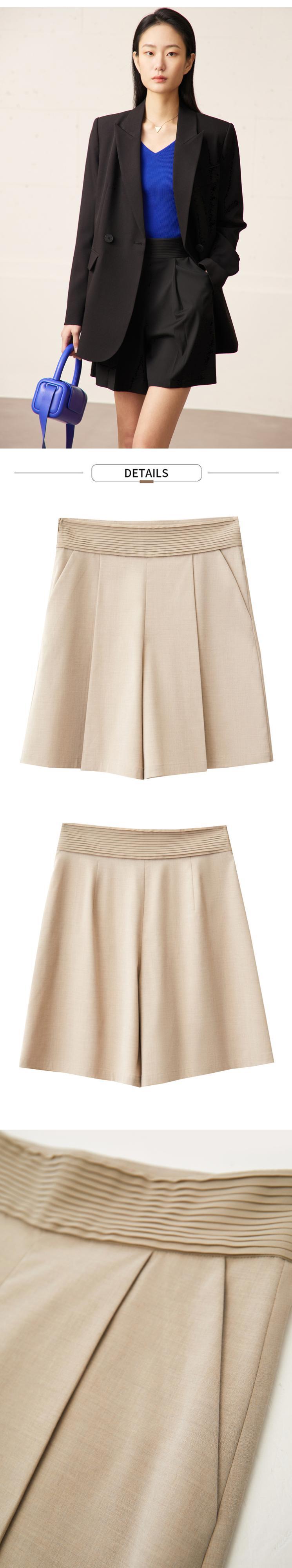 AMII ミニマリズム プリーツ ショートパンツ パンツ 無地 黒 レディース ショートパンツ サマーシック ストレート パンタロン 12332011 ブラック 夏物 ショーツ ブルマー ソリッドカラー | twelve