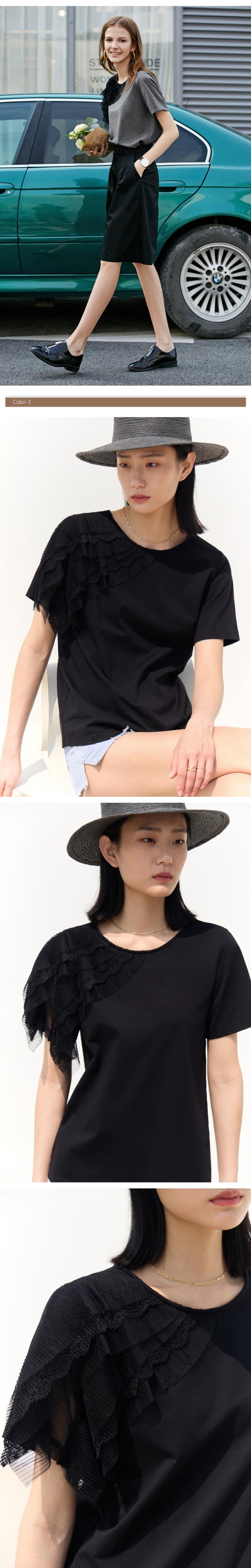 AMII ミニマリズム パッチワーク レース Tシャツ ルーズ コットン シック サマー トップ レディース 半袖 フレンチ Tシャツ 12332018 ショート ハーフスリーブ 夏物 | twelve