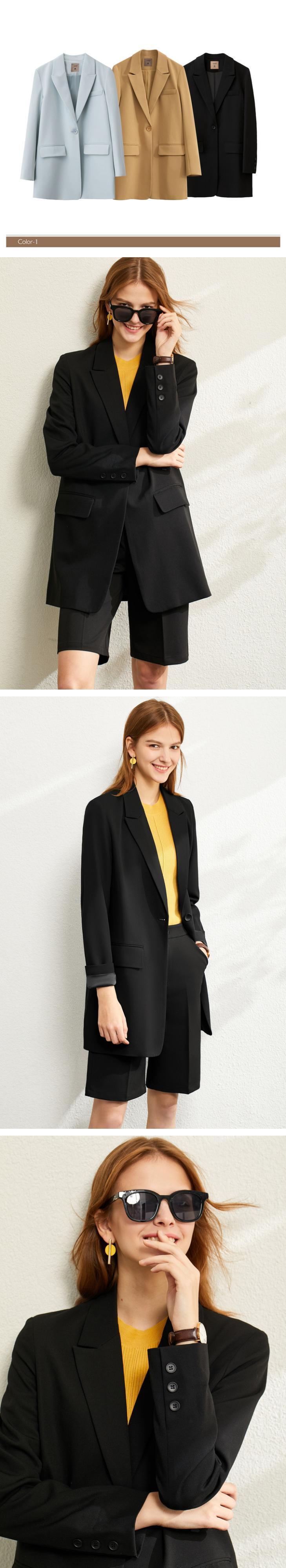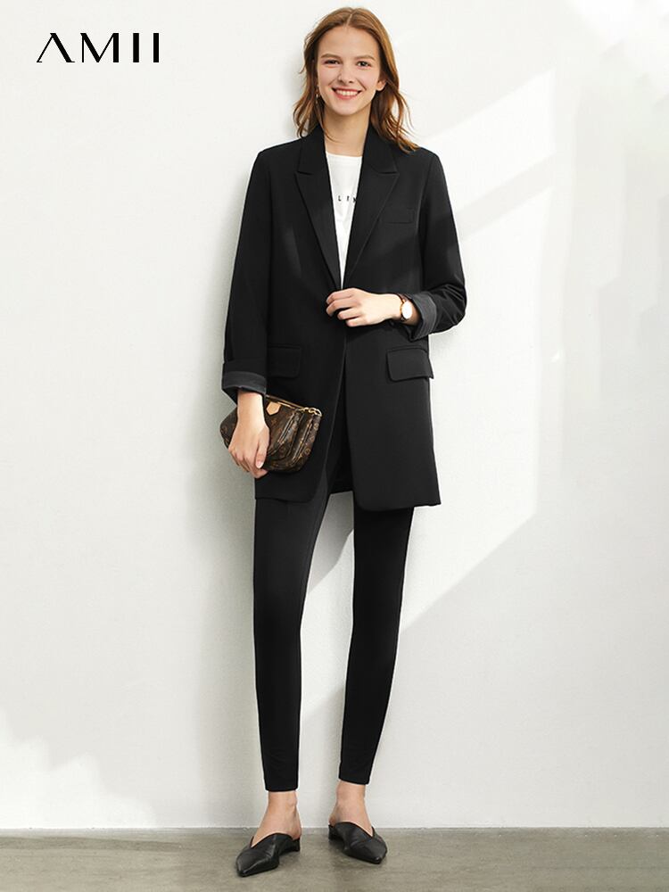 AMII ミニマリズム ブレザー レディース スピング ルーズ オフィスレディ レディース ジャケット ブラック 無地 スーツ 12321065 ソリッドカラー 会社 学校 通勤や通学にも | twelve