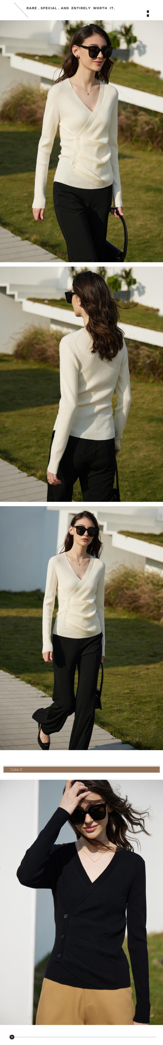 AMII ミニマリズム レディース セーター 春 オフィスレディ シャーリング スリム Vネック ニット トップス プルオーバー レディース 12321064 スプリング 春物 会社 学校 通勤や通学にも | twelve