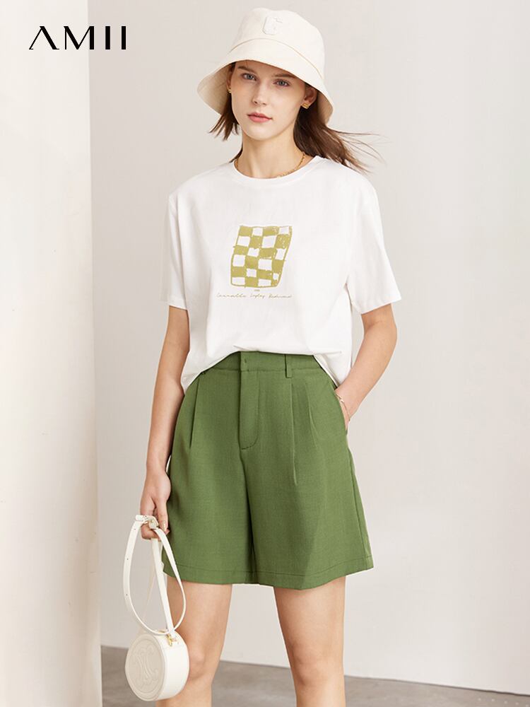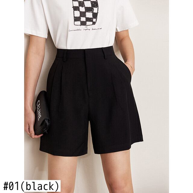 AMII ミニマリズム 夏 無地 レディース ショートパンツ オフィスレディ ストレート ブラック ウエストゴム ホットパンツ 12270464 エラスティック 伸縮 サマー 夏物 ショーツ ブルマー ソリッドカラー 会社 学校 通勤や通学にも | twelve