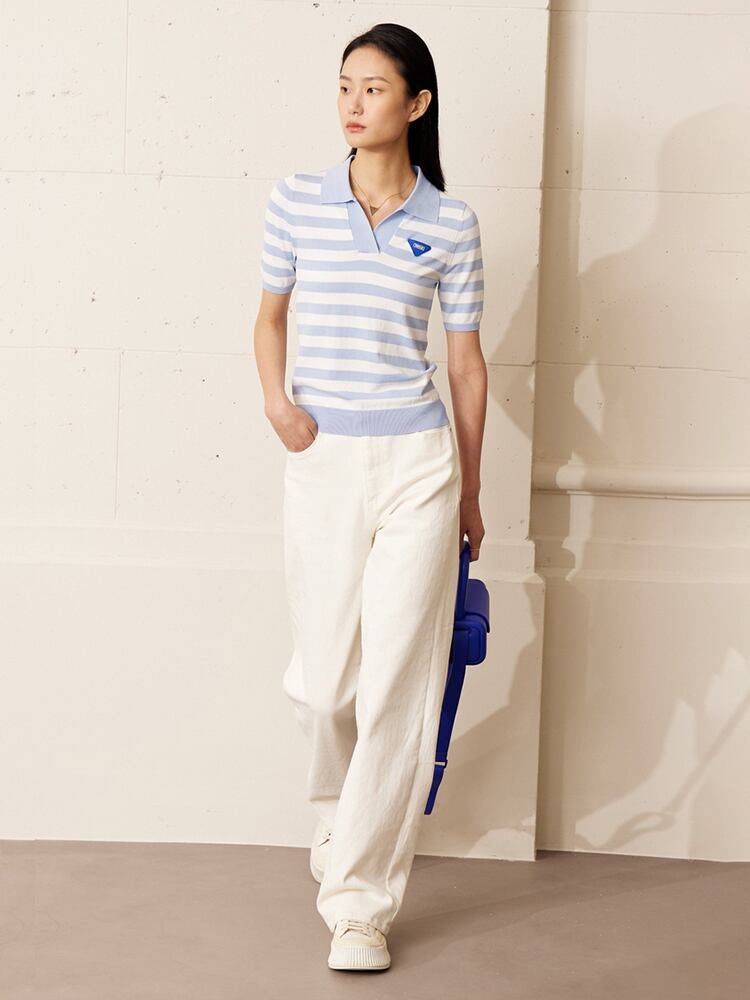 AMII ミニマリズム プルオーバー レディース 早春 オフィスレディ ストライプ 半袖 ポロ レディース 12322005 ショート ハーフスリーブ スプリング 春物 会社 学校 通勤や通学にも | twelve