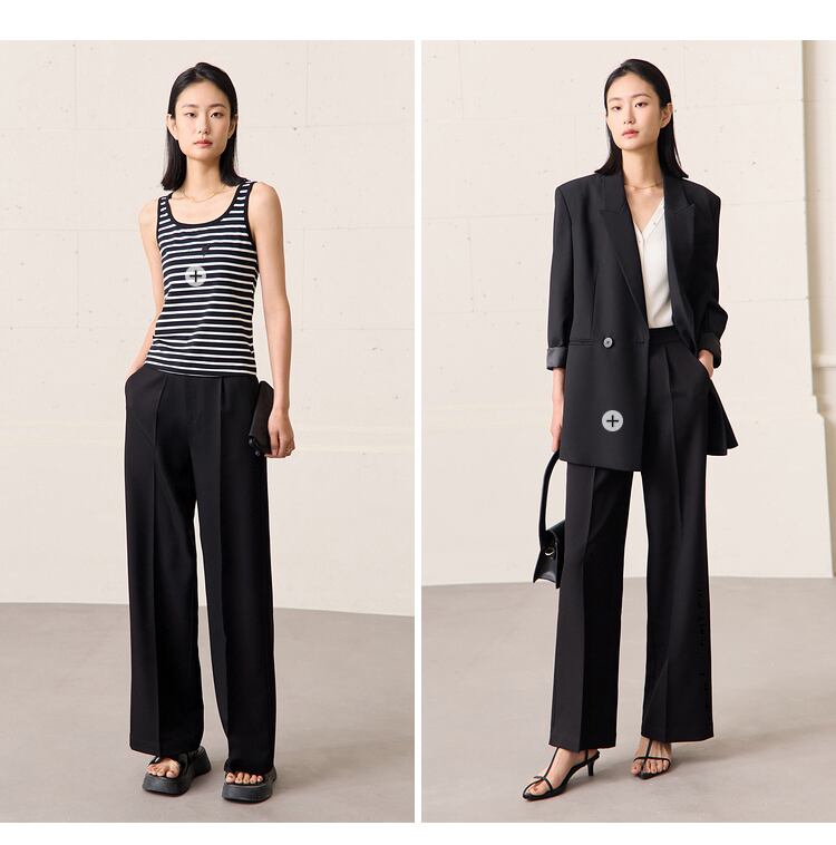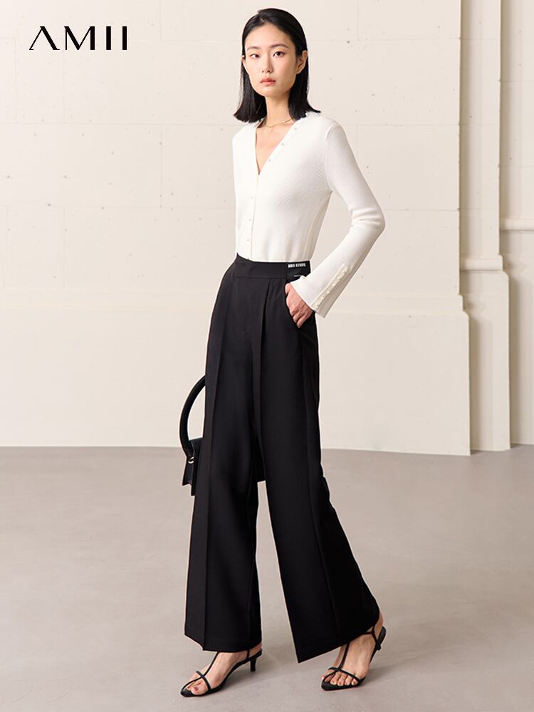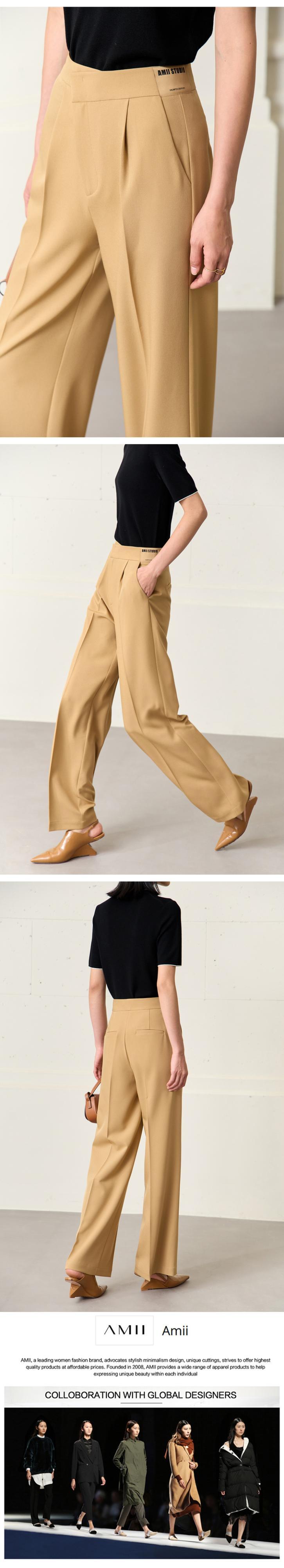 AMII ミニマリズム長ズボン夏ウエストオフィスレディワイドレッグパンツルーズ Pantalones 12342423 ロング サマー 夏物 ワイドパンツ 会社 学校 通勤や通学にも | twelve