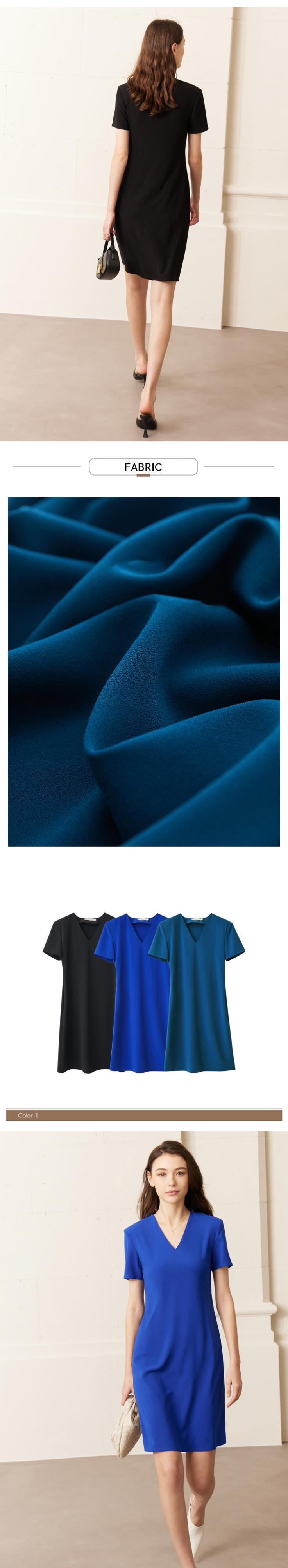 AMII ミニマリズム レディース ワンピース Vネック Aライン 無地 全3色 オフィスレディ シック スリム 半袖 Vestidos 12322012 ショート ハーフスリーブ ソリッドカラー 会社 学校 通勤や通学にも | twelve