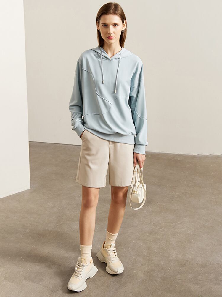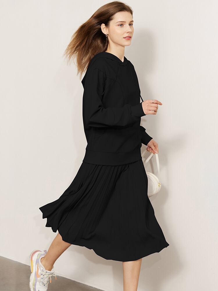 AMII ミニマリズム ブラック 無地 レディース 服 春 パーカー & スウェットシャツ Y2k ルーズ パーカー プルオーバー 12341068 スプリング 春物 ソリッドカラー | twelve