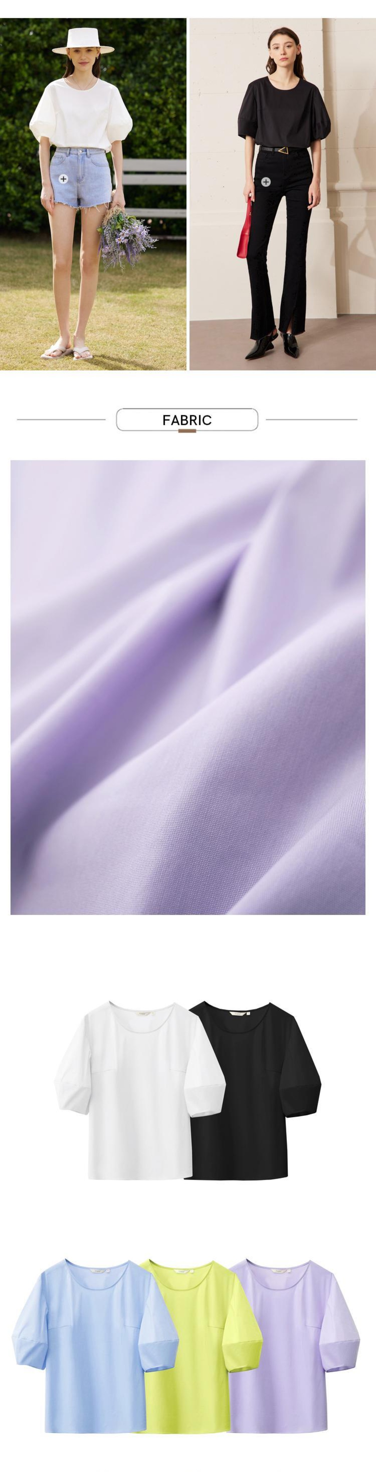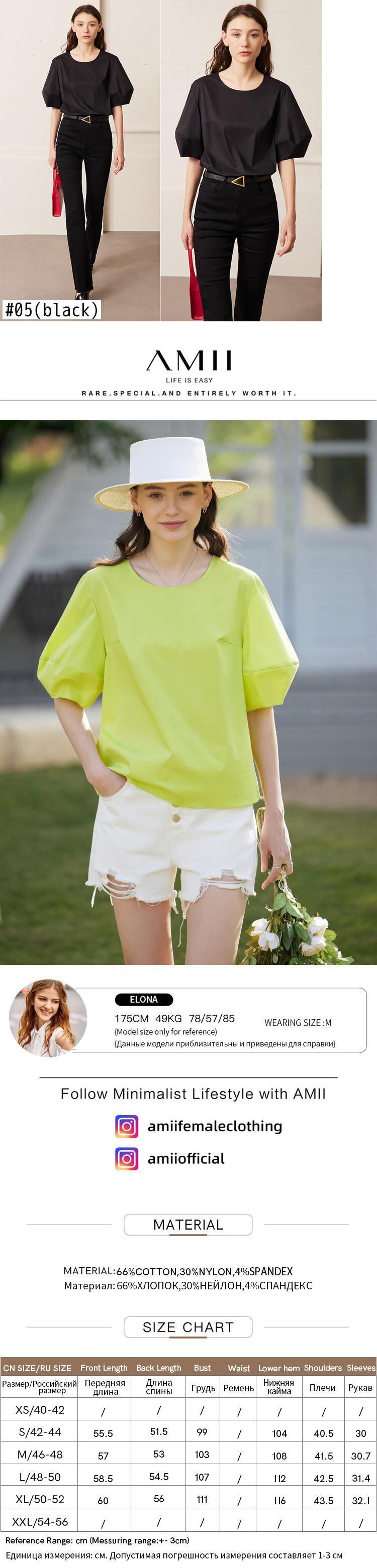 AMII ミニマリズム パフ ランタン スリーブ ホワイト レディース シャツ & ブラウス 半袖 ルーズ トップ フレンチ ブラウス プルオーバー 12342430 ショート ランタンスリーブ ハーフスリーブ | twelve